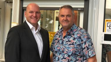 Zwei, die von Berufswegen gerne anpacken: Stephen Brauer, Newcomer der FDP/DVP-Fraktion im baden-württembergischen Landtag mit Manfred Kuch, Geschäftsführer der KBK GmbH.